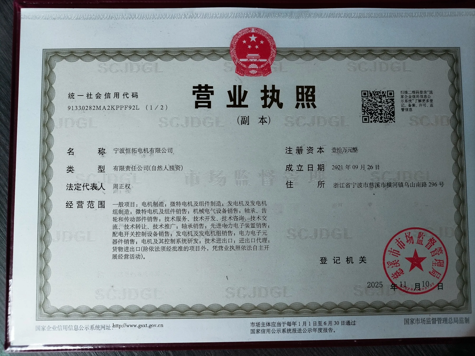 Company Name : Ningbo Hengtuo Motor Co., Ltd.